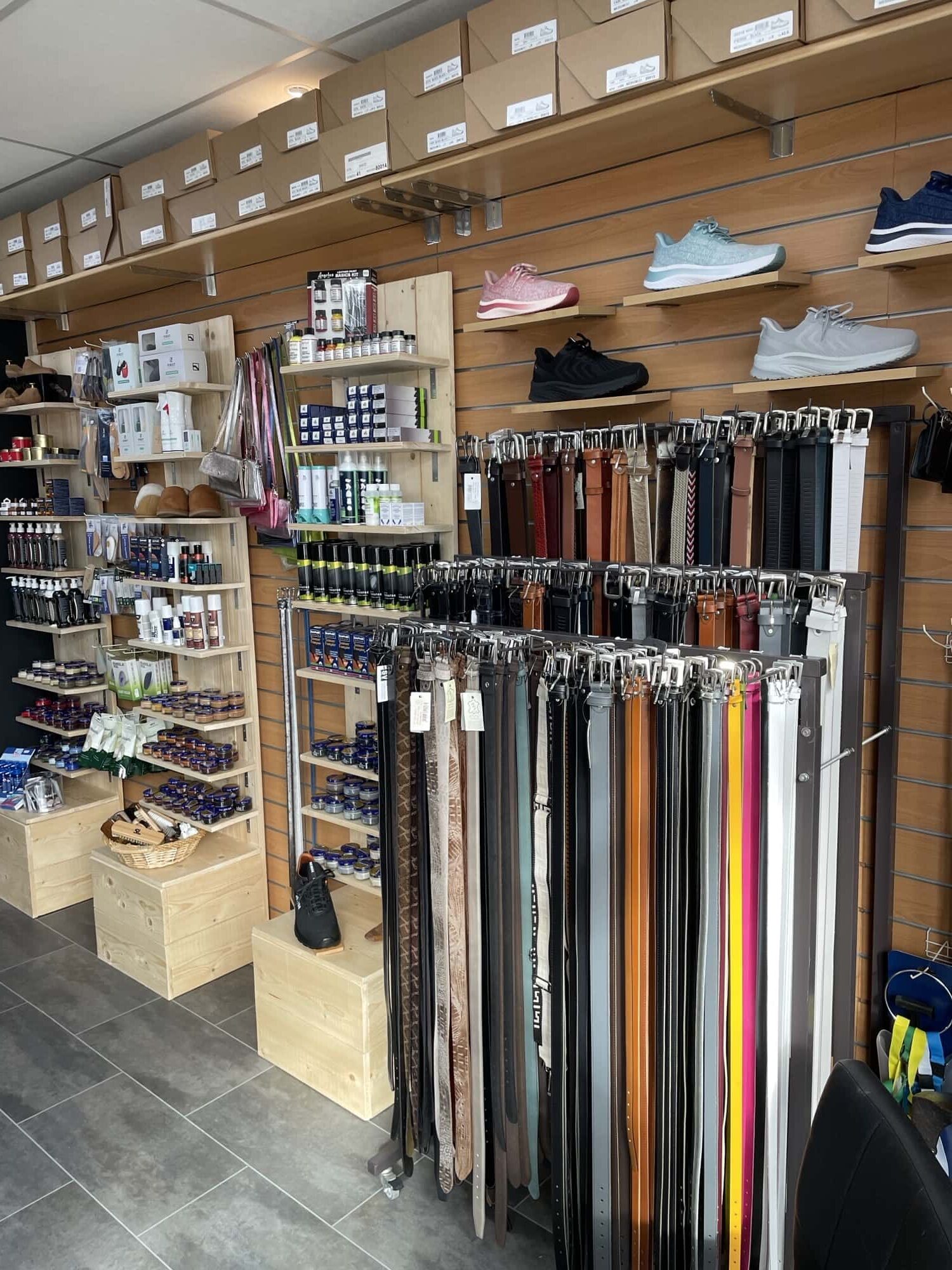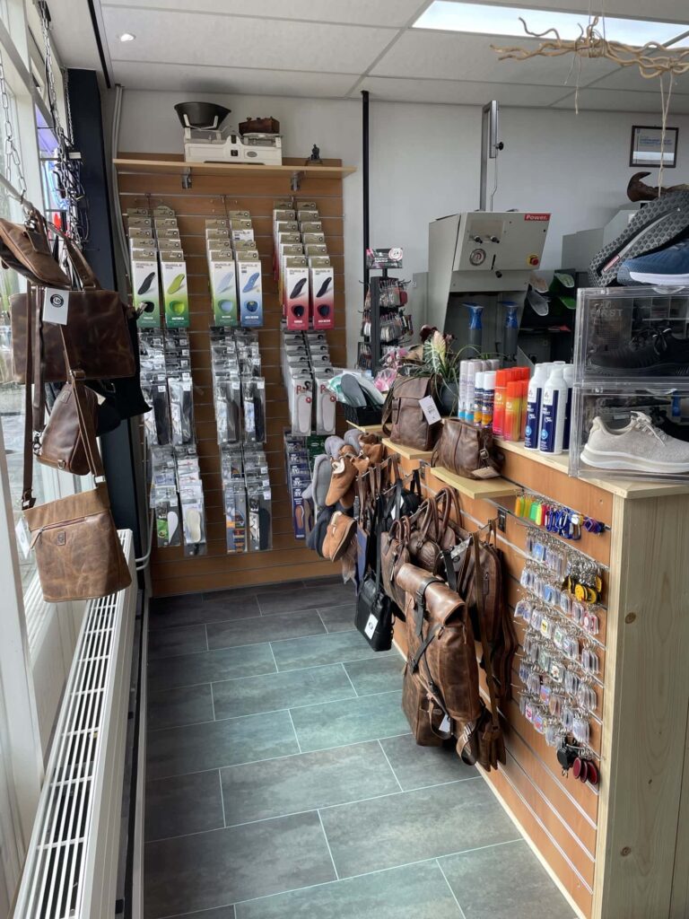 In de winkel kun je terecht voor naamborden, veters, zolen, onderhoudspullen en meer. Kom langs voor ons actuele assortiment.